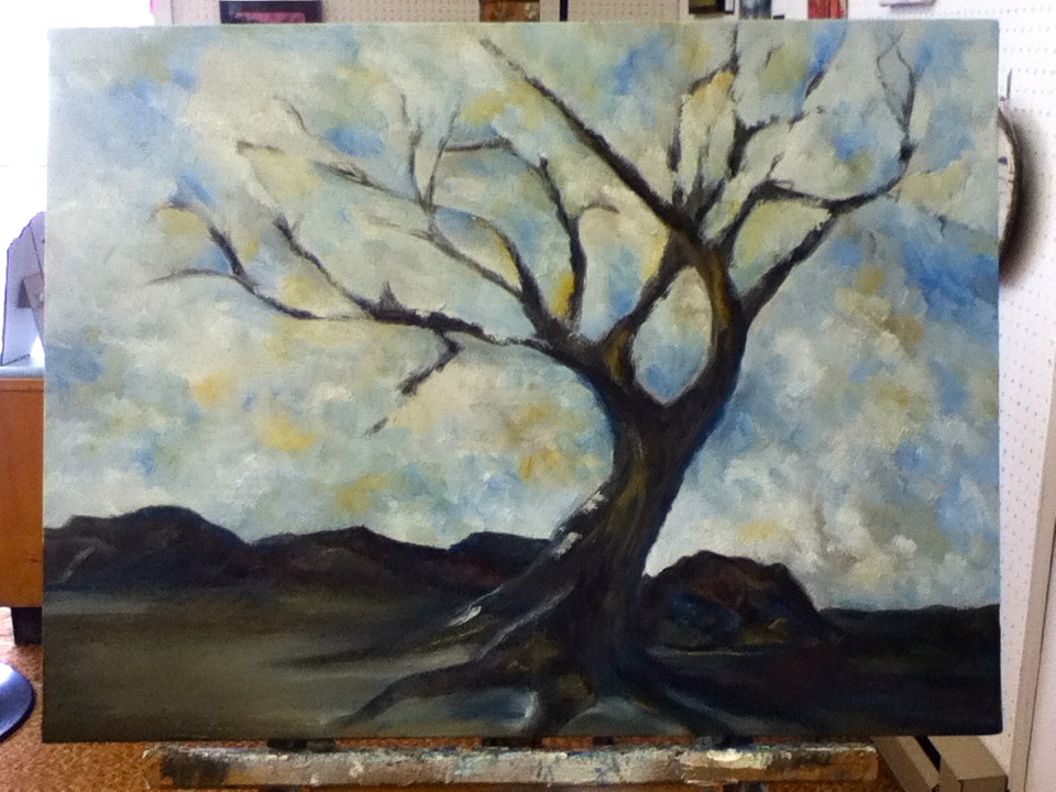 Yesterday I was in open studio at Artisans of the Gap. I love being in our building, the sunshine pouring in the windows, art everywhere. These feelings inspired to put another canvas on the easel. The piece I chose below is from My View-Daily Paintings (I can’t recall what day this one is). The plan was to start from scratch, but I liked the original image a lot. The perception that I originally wanted to convey is just not there. The challenge, I decided, was to take what is there-give it love and attention-to generate that visually. With more time, and no deadlines to meet, this is my goal.