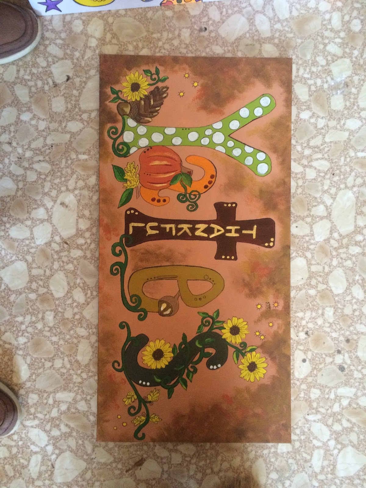 | 12×24 inch hand painted fall sign personalized copyright Valerie Dowdy 2015 |